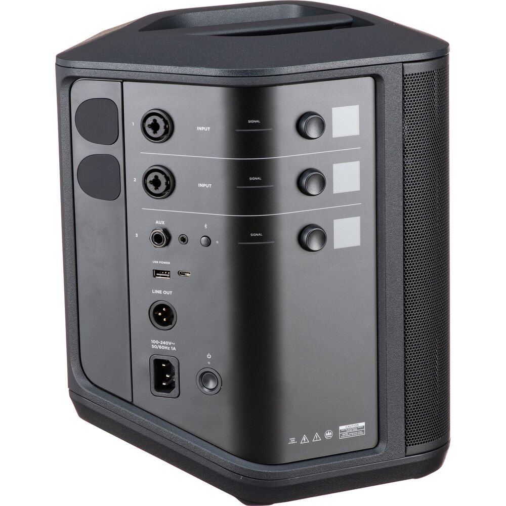 The full-featured, 3-channel mixer with reverb offers two combo XLR-1/4″ inputs, a 1/4″ aux input, a 3.5mm stereo input, and Bluetooth for streaming audio from up to 30′ away. The onboard ToneMatch processing is designed to enhance vocals and instruments. The S1 Pro+ has built-in sensors, which detect multiple aiming positions, allowing for optimal sound in nearly any position including on a table, on the floor, mounted on a standard 35mm speaker stand, or used as a wedge monitor. The integrated lithium-ion battery allows you to power-up and play your Bose S1 Pro+ system for up to 11 hours at moderate volume levels and up to 5 hours at full volume for live performances.